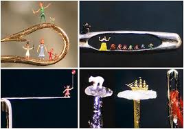Willard Wigan is a specialist of the infinitesimal, he sculpts in a pinhead. On the other hand, the prices are méga : count 9000£ for a Bart Simpson.