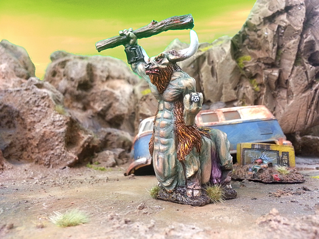 est un centaure post apoc en 28 mm.